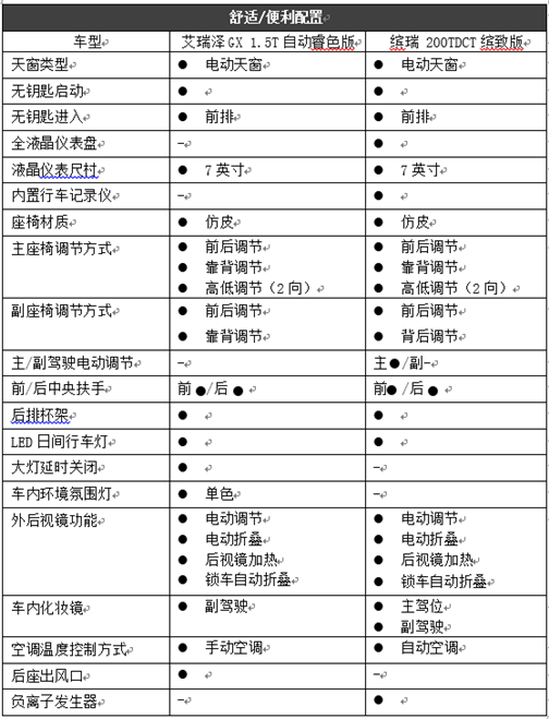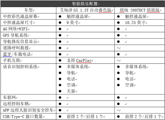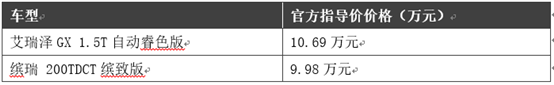 - 配置:艾瑞泽GX赢在智能、安全配置,缤瑞在便利性配置上更胜一筹