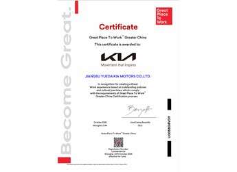 江苏悦达起亚获全球权威职场文化评估机构“卓越职场”认证2025/10/31 10:17:00