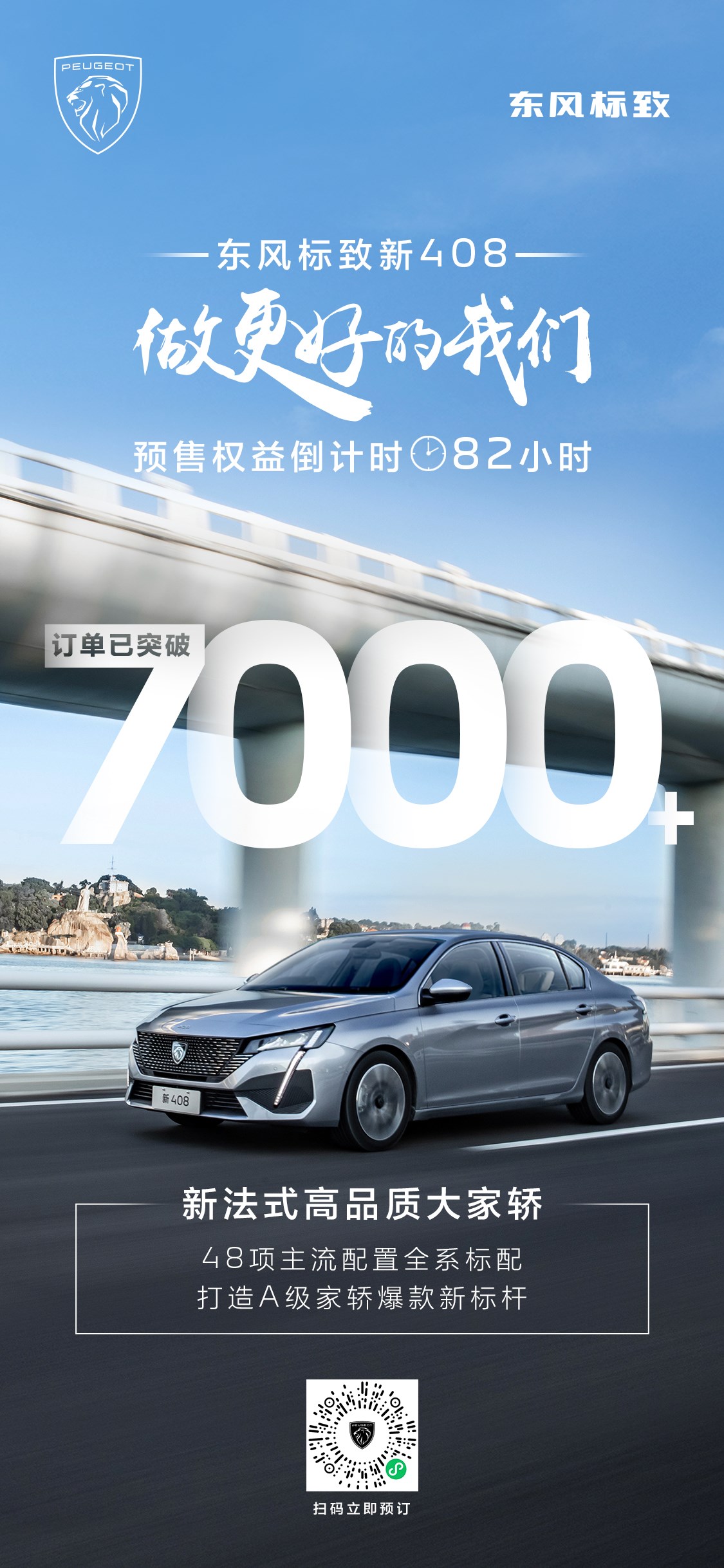 万众期待的东风标致新408即将于8月21日正式上市。作为标致品牌焕新后中国市场首款搭载新狮标的车型,新408自7月27日开启预售后非常火爆,订单量已突破7000台。目前,新408预售权益已经正式进入倒计时,现在抢先预订,还可享“2000元订金抵4000元购车款”礼遇。