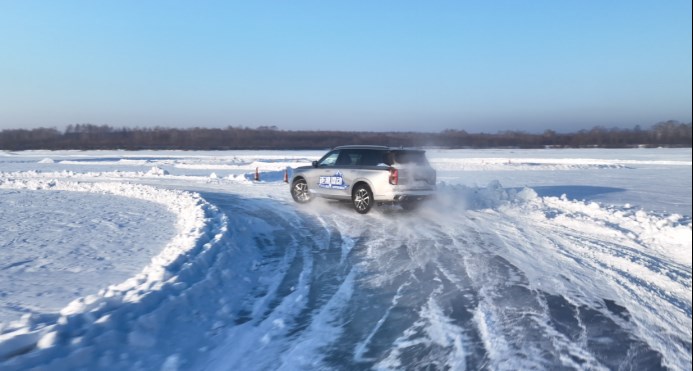 在冰雪路面上的直线加速制动测试,这里主要考验的是钜浪混动家族的动力输出的爆发性和驾控灵敏性。“钜浪混动”首款MPV车型M8宗师双擎系列展现出了优秀的制动能力,并凭借丰富的越级配置加持,为现场的媒体带来了百万级的中国式豪华舒适享受。