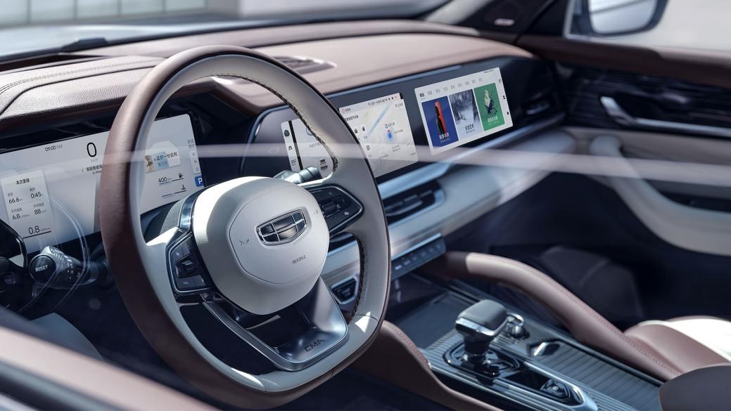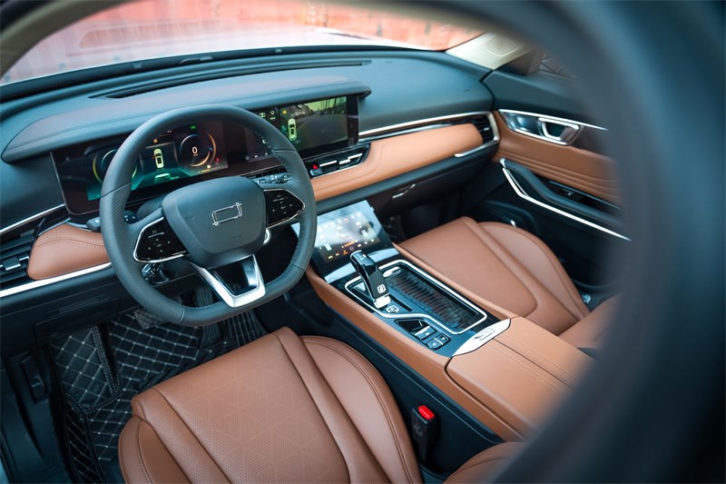 星越L内部设计也是非常醒目,横贯中控长达1m的大联屏,内置吉利银河OS系统,同样使用高通骁龙8155芯片,副驾屏幕可以独立进行娱乐,尊崇感也可以得到保证。