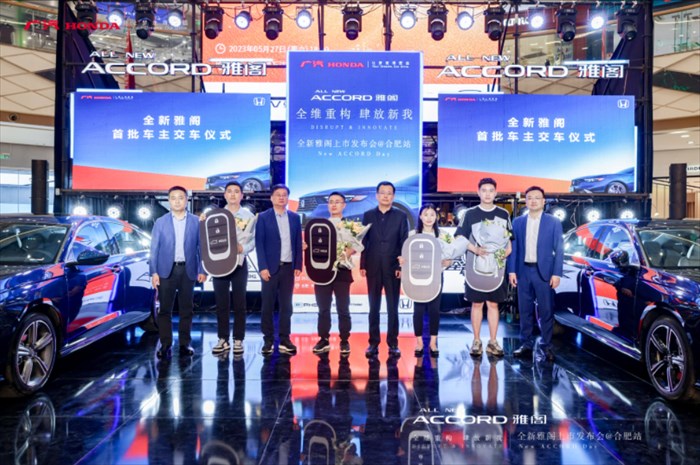 在全新雅阁正式上市之际,广汽本田也为合肥区域的首批车主准备了惊喜的交付仪式,送上了钥匙、鲜花并合影留念。