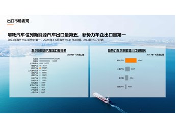 截止2024年5月底,哪吒汽车出口已累计超过3.5万辆,长期坚持“深耕东盟、抢滩南美,开发中东和非洲”出海战略的成果初现。2024年1-5月,哪吒汽车新能源汽车出口16458辆,位列车企新能源汽车出口量第五,新势力车企出口量第一。