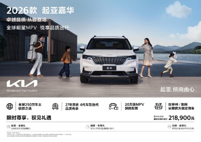 在产品方面,悦达起亚始终坚持“油电并行”的战略方向,在积极推动电动化转型、加快新能源产品布局的同时,持续焕新经典燃油车型,全面覆盖不同细分市场的多元化出行需求。9月,2026款起亚嘉华焕新上市,作为累计销量超过250万辆的全球畅销车,嘉华历经27年经典传承与4代车型更迭,是起亚全球旗舰MPV。2026款起亚嘉华继承了嘉华(Carnival)全球统一的卓越品质,拥有三排皆尊的宽适空间、全维守护的安全保障、智能丰富的科技配置、平顺沉稳的驾乘体验等领先的产品价值,为中国用户带来宜商宜家的高品质出行新体验。