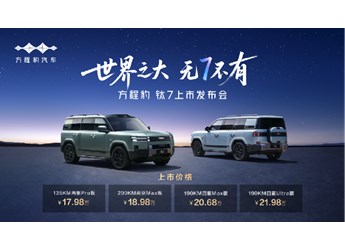 9月9日,比亚迪最新开创之作“大五座天花板”——方程豹钛7正式上市,新车共推出4个配置版本,售价17.98万元-21.98万元:其中,135KM两驱Pro版17.98万元,200KM两驱Max版18.98万元,190KM四驱Max版20.68万元,190KM四驱Ultra版21.98万元,款款越级,款款超值,下单即刻享受最高价值超3.6万元的上市权益。