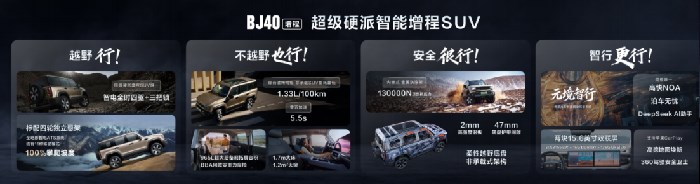 北京越野董事长王昊表示,作为中国越野车发明者,北京越野开创了属于中国人自己的越野车品类。BJ40增程为全球用户开辟了一个全新品类——“硬派增程SUV”,自上市后至今交付量已经突破三万台。北京越野会在这个市场持续创新,迭代优化,把更好、更多、更行的产品带给大家!BJ40增程元境智行就是越野行!不越野也行!安全很行!智行更行!智行硬派SUV,就买BJ40增程。