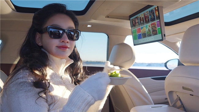 待天色渐晚,一键小憩模式更是治愈利器。主驾座椅能接近180度平躺,配合空调暖风与静谧的车内环境,在冰湖之上也能安稳休憩。这一功能对上班族同样友好,午休或工作间隙想放松时,在停车场开启一键小憩,就能拥有一个安静舒适的“移动休息室”,告别趴在办公桌上睡午觉的僵硬与不适。
