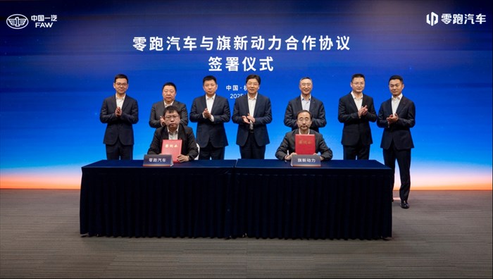 2025年12月28日,中国一汽与零跑汽车在杭州举行签约仪式,中国一汽全资子公司一汽股权投资(天津)有限公司(下称“一汽股权”)和一汽旗新动力(长春)科技有限公司(下称“旗新动力”)分别与零跑汽车签署投资协议和合作协议。杭州市委副书记、市长姚高员,中国一汽党委副书记、总经理刘亦功,零跑汽车创始人、董事长兼CEO朱江明出席仪式并共同见证签约。