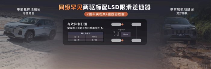 在整车架构上,全新换代威兰达标配丰田全新域控架构,拥有丰田引以为傲的强悍机械素质。在核心性能方面,AIR版标配同级唯一的LSD限滑差速器,左右前轮可实现扭矩实时分配,让两驱车型也能获得媲美四驱的脱困能力,应对冰雪或泥泞路况也能从容行驶。
