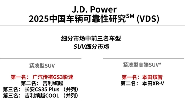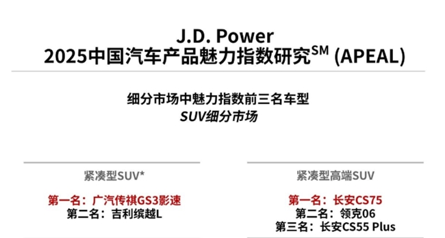 据中国汽车质量网统计,影速自2023年至今一直稳居自主品牌小型SUV质量冠军,在《J.D.Power2025中国车辆可靠性研究(VDS)》 中,影速荣获紧凑型SUV可靠性第一名;在《J.D.Power2025中国汽车产品魅力指数研究(APEAL)》 中,影速同样位列紧凑型SUV榜首,这意味着用户在实际用车中,对其设计、性能、智能化及驾驶感受给予了极高的评价。