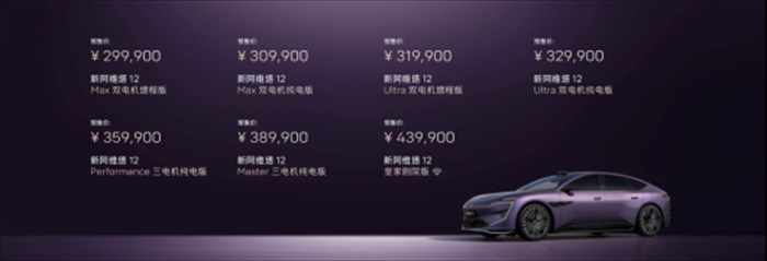 新阿维塔12开启预售,提供纯电/增程双动力,共7个车型版本,预售价29.99万元-43.99万元
