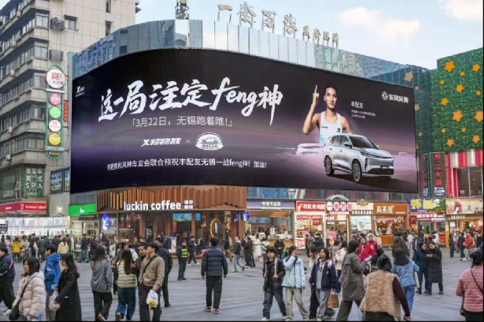 与此同时,东风风神车友会与特步特跑族实现深度跨界联动,无锡马拉松赛场外,联名户外广告为夺冠热门选手丰配友加油助威,这是风神与特步两大国货品牌的深度联动,亦是车友会与跑团的双向奔赴,形成线上线下双向引流,共同诠释“国产力量强强联合”的格局。