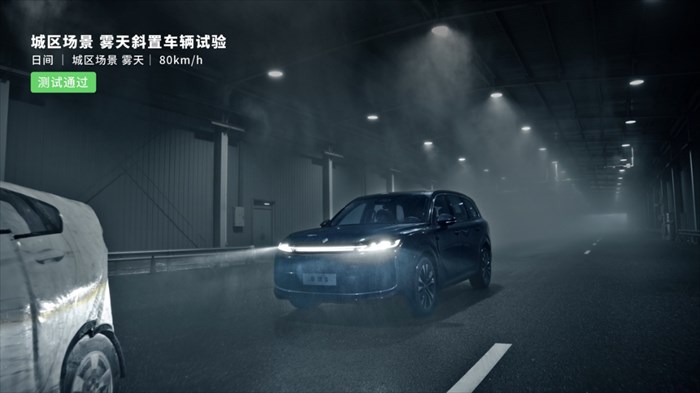 城区极端天气,稳健应对低能见度挑战:在极低能见度的雨天和雾天环境中,放置侧翻车辆和斜置车辆做为目标障碍物模拟真实事故场景,叠加雨天湿滑路面制动难度升级,华境S仍能以80km/h车速识别障碍物刹停,凸显其驾驶辅助系统卓越的极端天气适应能力。