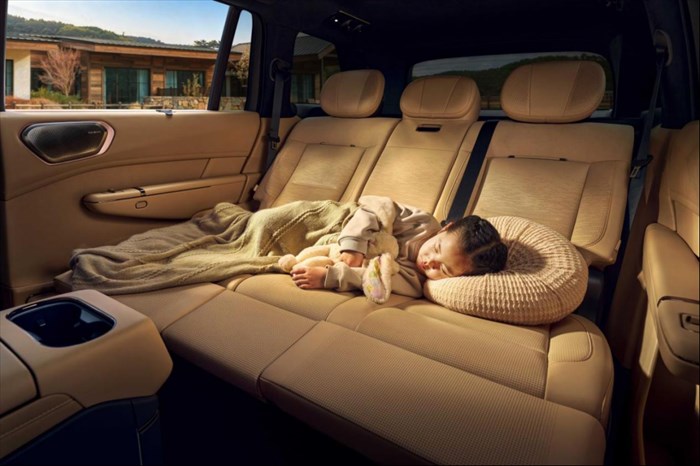 针对家庭用户,新车首创同级唯一“童梦空间”,二排腿托抬起即可形成1.35m×0.85m儿童床,无需复杂铺装,为孩子打造专属移动休憩区。 新车同时支持灵活大四座、奢阔大五座自由切换,中央扶手放下秒变“大四座”头等舱 ,商务接待体面尊崇;扶手收起回归奢阔大五座,多人出行宽适无忧。